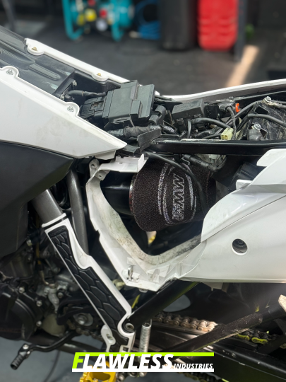 We would like to point out that the FLAWLESS Performance Kit changes the mixture formation of the motorcycle. During our development work, the mixture did not achieve any dangerous AFR values even without adjusting the ECU. However, we cannot guarantee this, especially in combination with other modifications. We therefore always strongly recommend that the ECU be modified by FLAWLESS Industries or another specialist workshop.